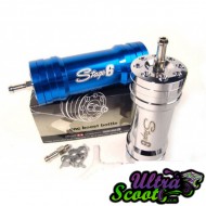 Le poumon de reprise Stage6 est spécialement conçu pour les moteurs 70cc. Comme la version Doppler, il a une chambre solide, ce qui empêche le flux d'air d'osciller d'avant en arrière à travers le venturi du carburateur lorsque l'accélérateur est réduit. De cette façon, votre scooter aura également moins de problèmes avec un mélange trop riche, une plus faible consomation de carburant ainsi qu'une meilleure réponse à l'accélérateur. Très recommandable avec un gros carburateur, qui peuvent souvent avoir des problèmes avec le mélange à bas régime. Livré avec toutes les petites pièces nécessaires pour le montage et disponible en chrome ou bleu anodisé.